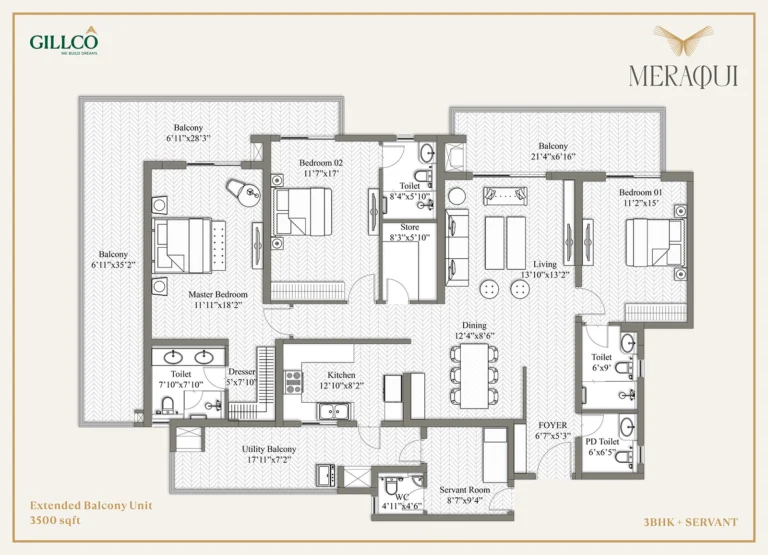 Offering 3+1 and 4+1 BHK luxury apartments, Gillco Meraqui is ideal for families looking for larger living spaces, work-from-home flexibility, and a refined lifestyle. Each residence is designed with attention to natural light, ventilation, and functional space planning, ensuring both comfort and long-term value.